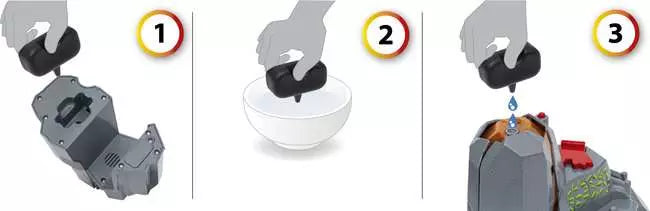 36092 Dinosaur Erupting Volcano includes 5 pieces: 1x Eruption Volcano, 1x T-Rex Figure, 1x Pteranodon Figure, 1x Dinosaur Eggs Load, 1x Water Refill.