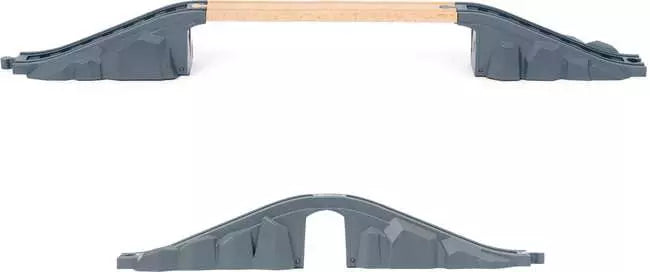 33773 Railway Starter Set includes 26 pieces: 2x Travel Engine, 1x Travel Passenger Wagon, 16x Wooden Tracks, 1x Mountain Tunnel & Bridge, 3x Play Figures, 1x Luggage, 1x Stop Signal, 1x Wooden Bench.