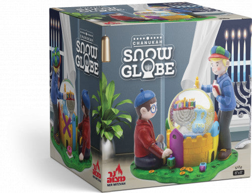- ADORABLE CERAMIC HANUKKAH WATER SNOW GLOBE: This colorful holiday snow globe has a festive Hanukkah theme. Hand made from ceramic this chanuka scene features a glass snow globe filled with water in the middle. Shake and watch the snow fall on the hanukkahs scene which includes a menorah and olive oil jug!