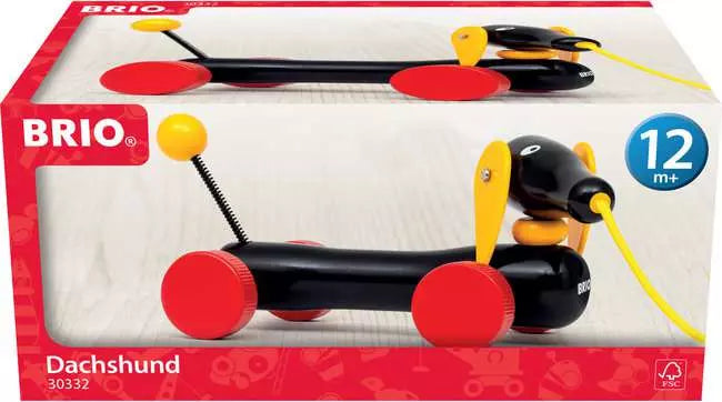 The Dachshund has been a BRIO classic since 1953. When the toddler takes the wooden pull-along dog for a walk, it moves its head and ears and wags its tail just like a real dog. This is a retro toy in its original design a real gem. The Pull Along Toy Dachshund Sausage Dog measures 20 x 9.3 x 8.8cm. Not only an adorable companion for your child, this friendly pull along will also help them practice their motor skills and learn to walk.