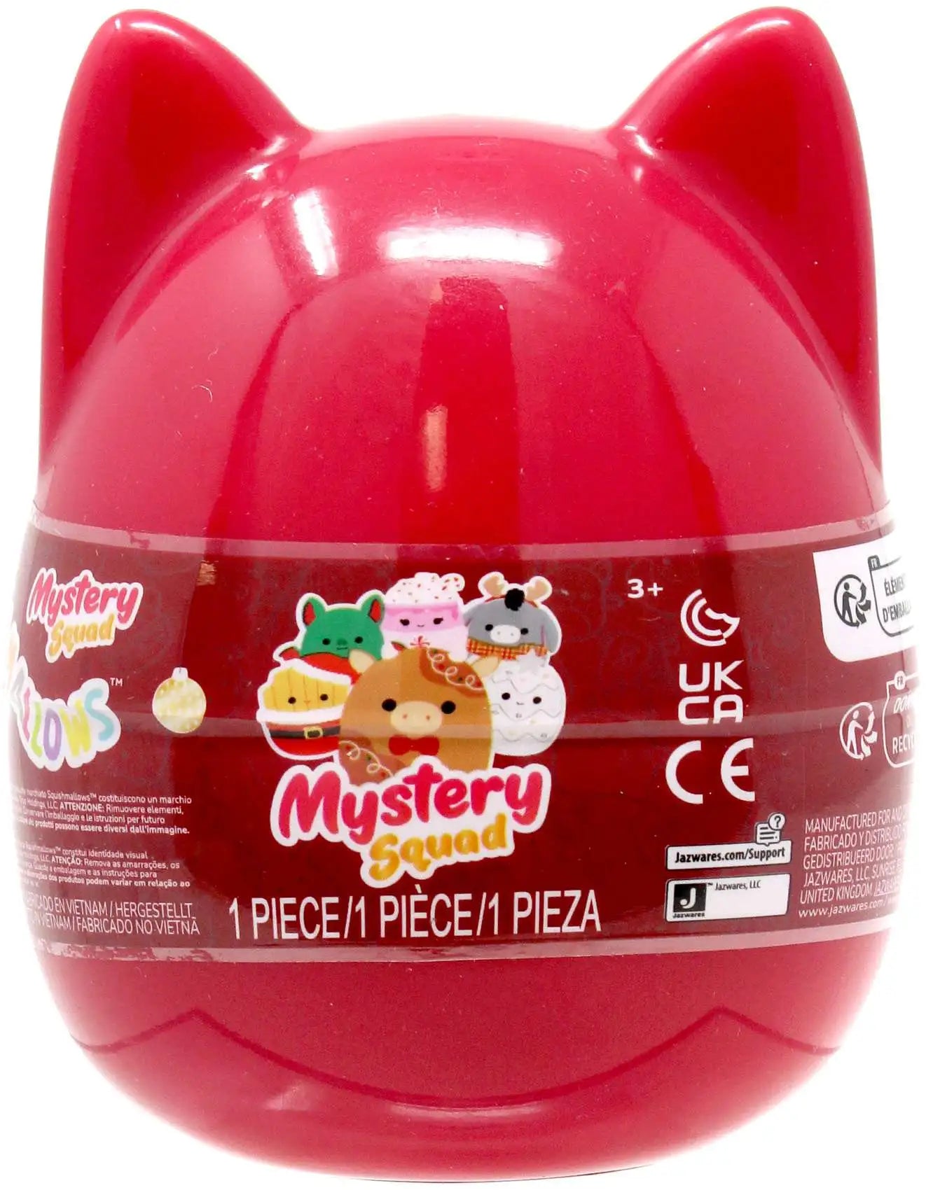 The Original Squishmallows brand brings holiday cheer with this 4 Inch Holiday Plush Mystery Capsule Assortment. Each capsule holds one surprise holiday-themed Squishmallow inside a festive, cat-eared container. Collect six merry characters like a gingerbread cow, fruit bat, Christmas tree, and even fries in a Santa suit. These limited-edition minis are full of seasonal charm and squishy fun.